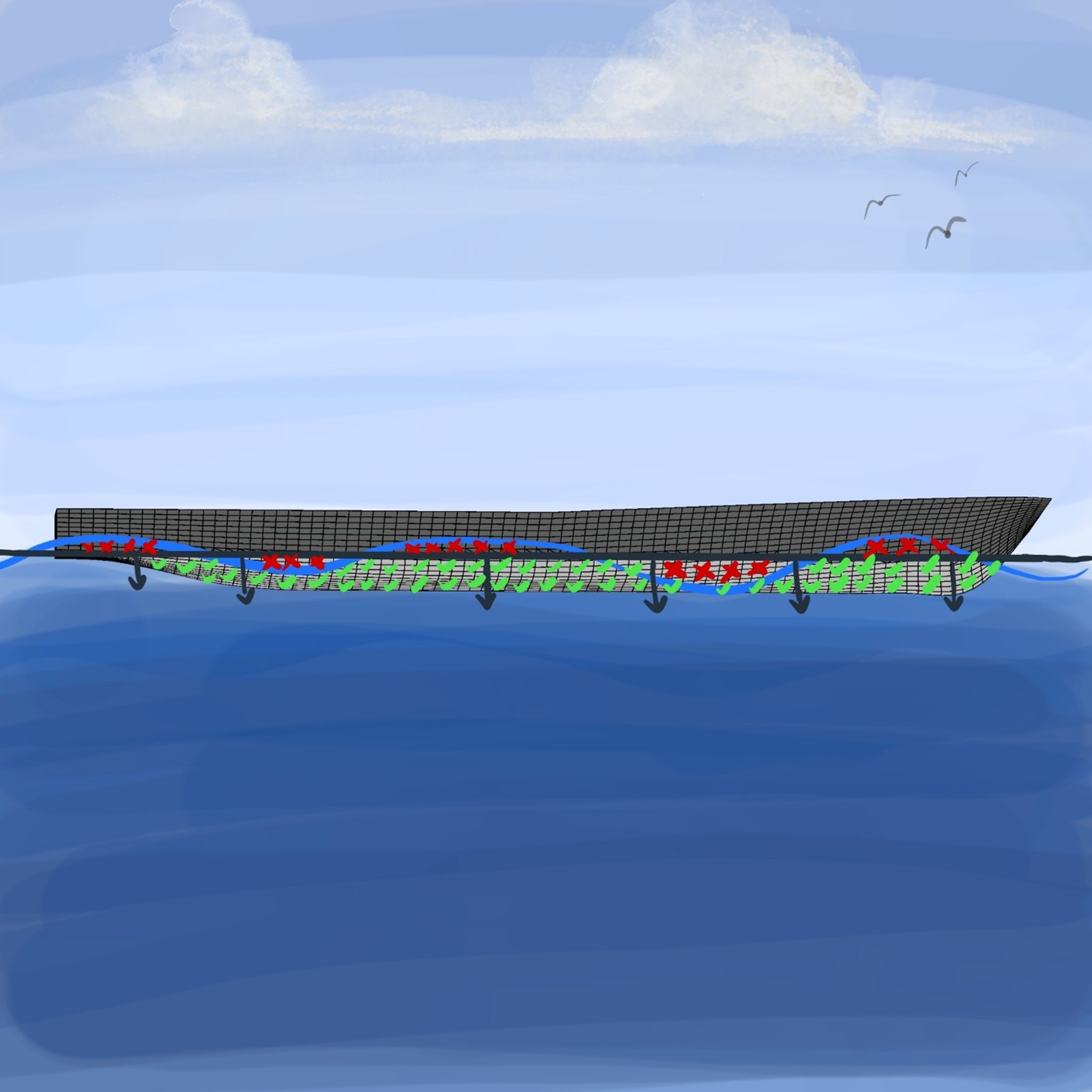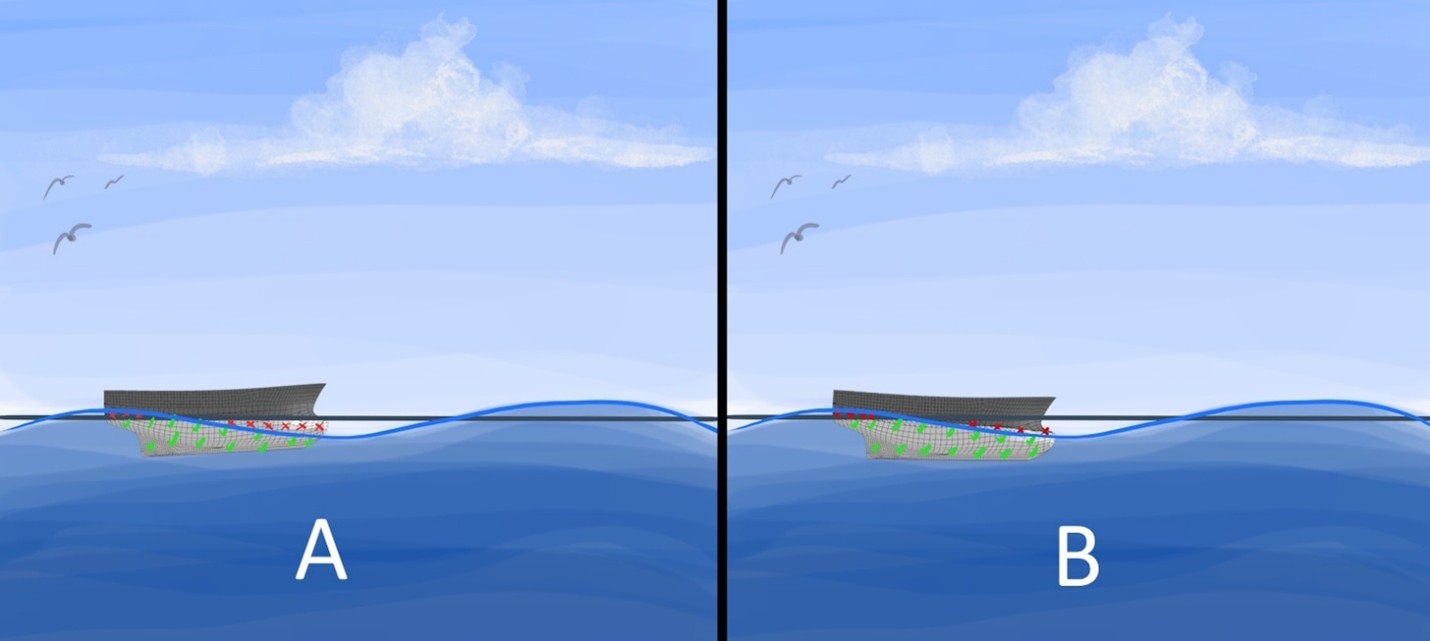 In certain extreme situations, a steep wave could approach the bow, and the wetted hull area could dramatically shift.